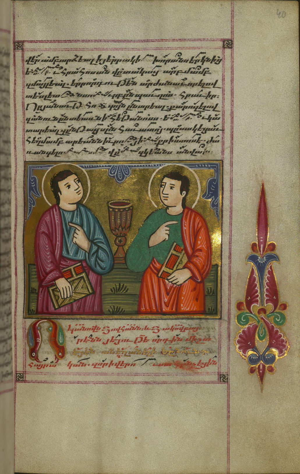 Якоб Пелиграцкий, святые Иоанн и Иаков, "Сыны грома", иллюстрация в Сборнике гимнов, рукопись Уолтерса, W.547, стр. 40, 1678. Константинополь | christianhistoryinstitute.org