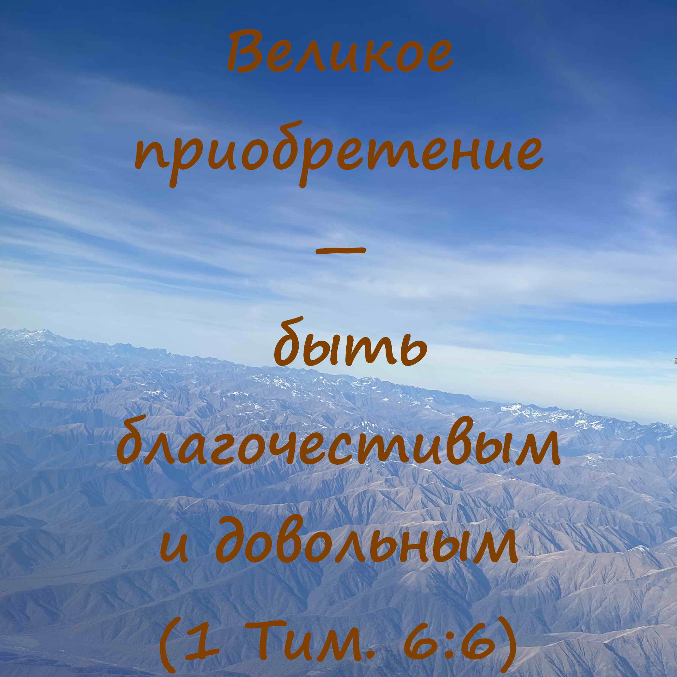 “Великое приобретение — быть благочестивым и довольным. Ибо мы ничего не принесли в мир; явно, что ничего не можем и вынести из него. Имея пропитание и одежду, будем довольны тем” (1 Тим. 6:6-8).