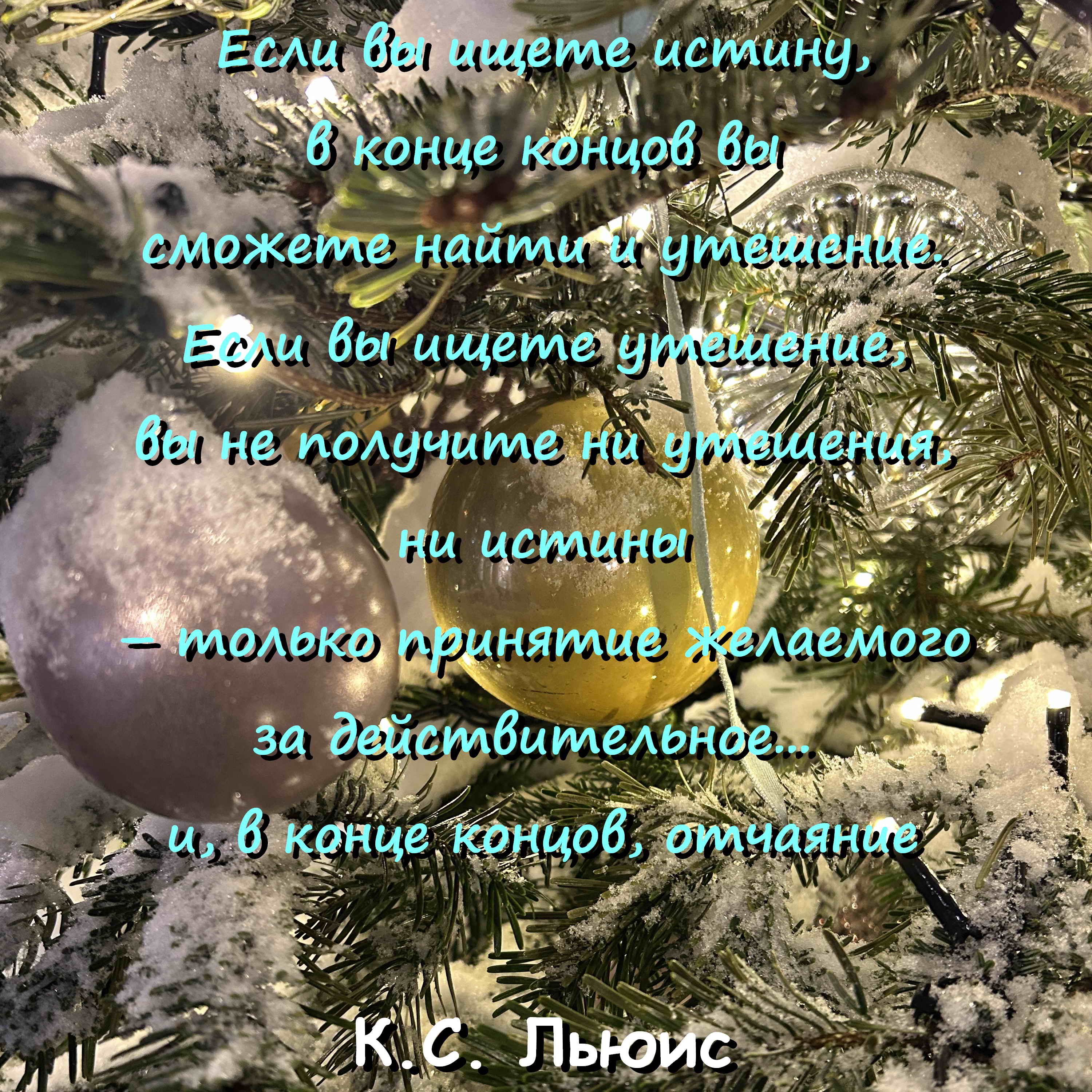 По словам К.С. Льюиса: “Утешение - это единственное, чего вы не сможете достичь, если будете его искать. Но если вы ищете истину, в конце концов вы сможете найти утешение: если вы ищете утешение, вы не получите ни утешения, ни истины – только... принятие желаемого за действительное... и, в конце концов, отчаяние”.